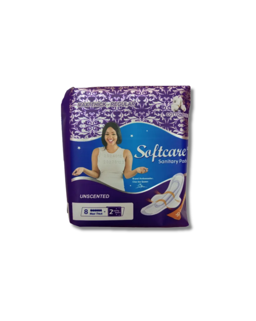 Softcare Maxi Thick Regular Unscented Sanitary Pads (8-pack) give you super absorbent, all-day comfort with breathable design, odour control, and a secure fit — perfect for daily flow without irritation.